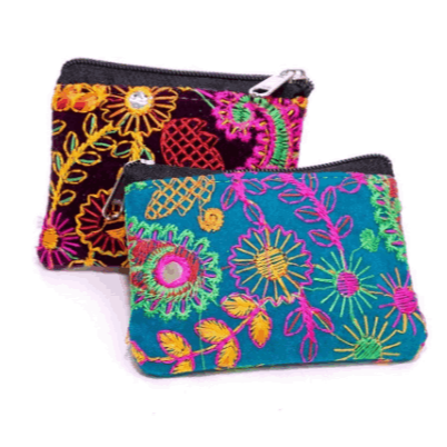 Bolsos, carteras, llaveros, pañuelos, colgantes, pulseras… de Nepal, la India y Tailandia.